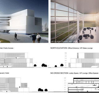 Persian art and architecture is heavily influenced by mathematical geometry and geometric patterns. Few, if any notable works in traditional Persian design exist ou outside a geometric framework. From an analytical perspective, w we understood that the formal, o organizational and aesthetic properties of a geometric pattern system would create a unifying language for this multi-use building typology with a divergent program and challeng and challenging access requirements. Therefore, in combining the precedent o precedent of cultural identity with pure mathematica mathematical logic, the development of a geometric p geometric pattern became the design basis of the Hamedan the Hamedan Chamber of Commerce. Spatial organizatio organization and relational elements were developed and synthesized through the pattern; which integrated site, design and building components into a greater whole. The pattern itself results from and responds to 'fields and flows flows'; site flows such as movement, access routes, sun path; and site fields such as views and natural attractors. All this while fusing the he heterogeneous program division and distribution both in t the vertical stacking of floors and h horizontal zoning. Programatically, the tri-axis configuration on the ground floor creates two principal entrances, with the third arc re responding to the site parameter and su surrounding woodland. These three arcs create varying views to the highway, mountain range and woodlands for interior spaces.